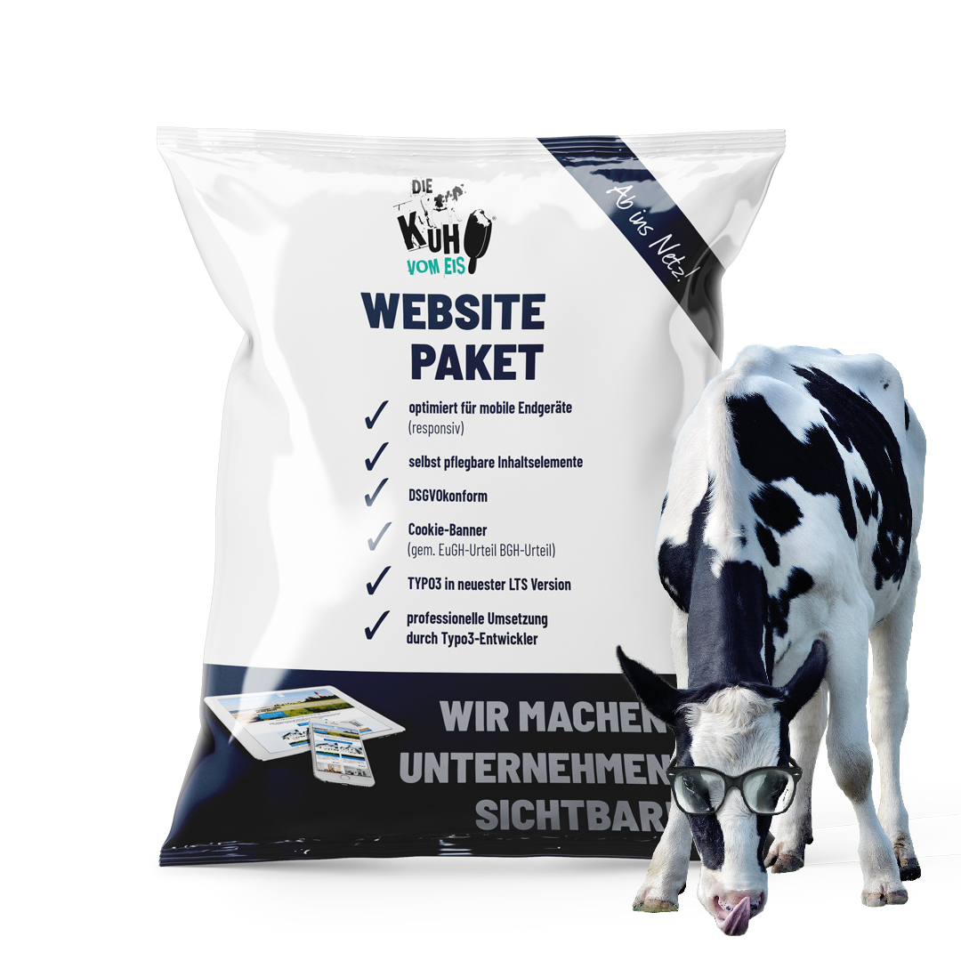„Die Kuh vom Eis-Websitepaket“ beinhaltet: